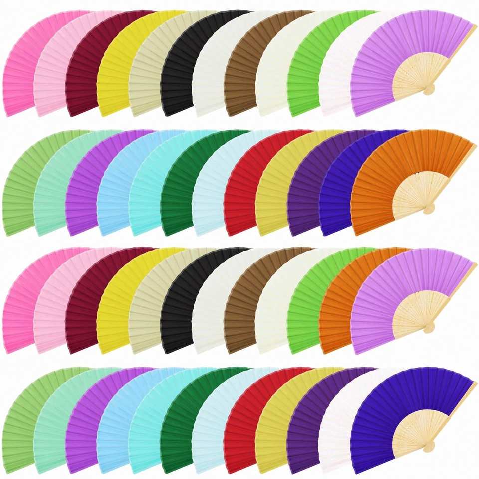 Abanico de Seda Personalizado Multicolor con Hueso de Bambú, Ecológico, Tallado, Plegable, para Regalo de Boda