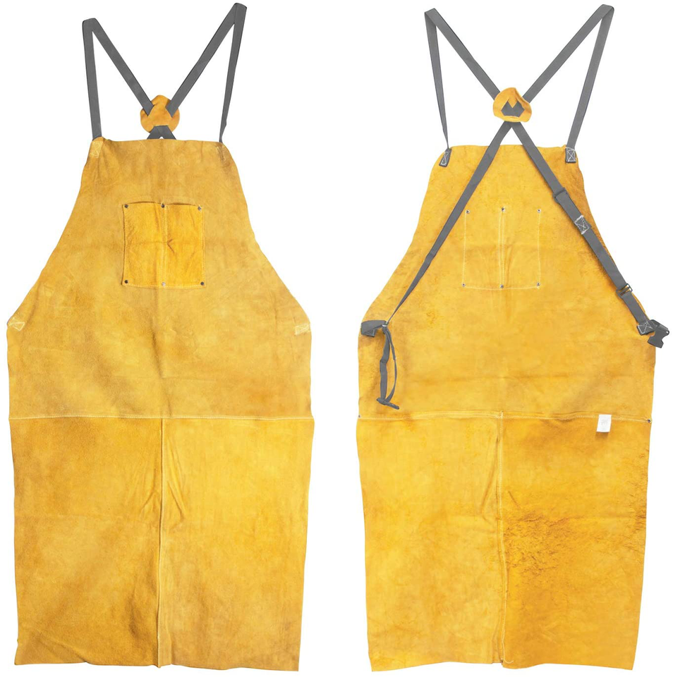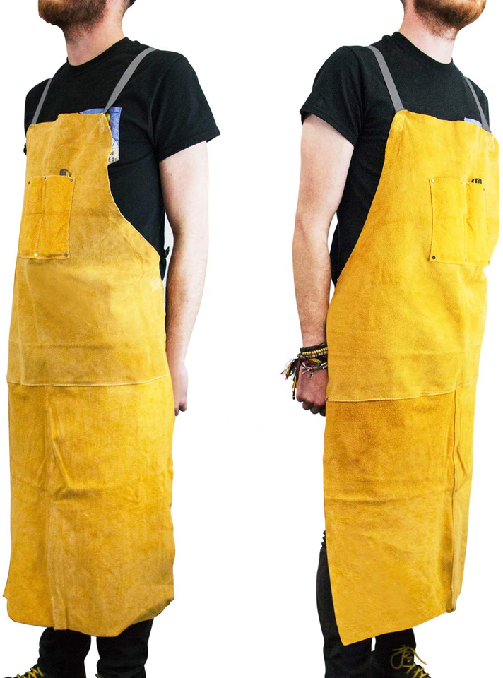 Delantal de soldadura de cuero dividido multibolsillo personalizado Ropa de trabajo de seguridad a prueba de agua para soldadores y carpinteros