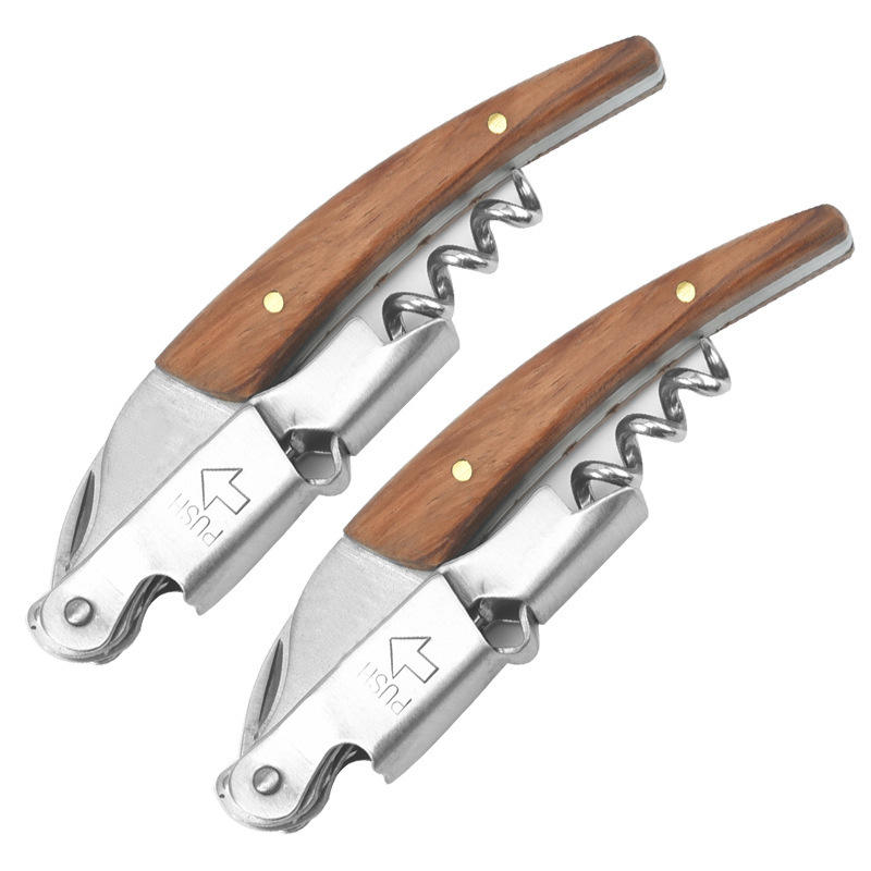 Sacacorchos portátil multifunción personalizado con mango de madera de 2 etapas, abridor de vino, accesorios de barra, herramienta de regalo para amantes del vino