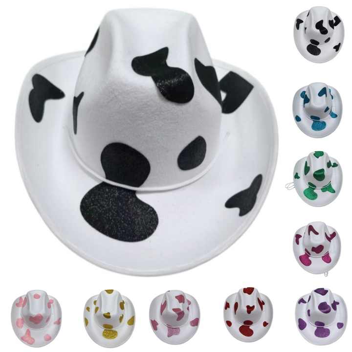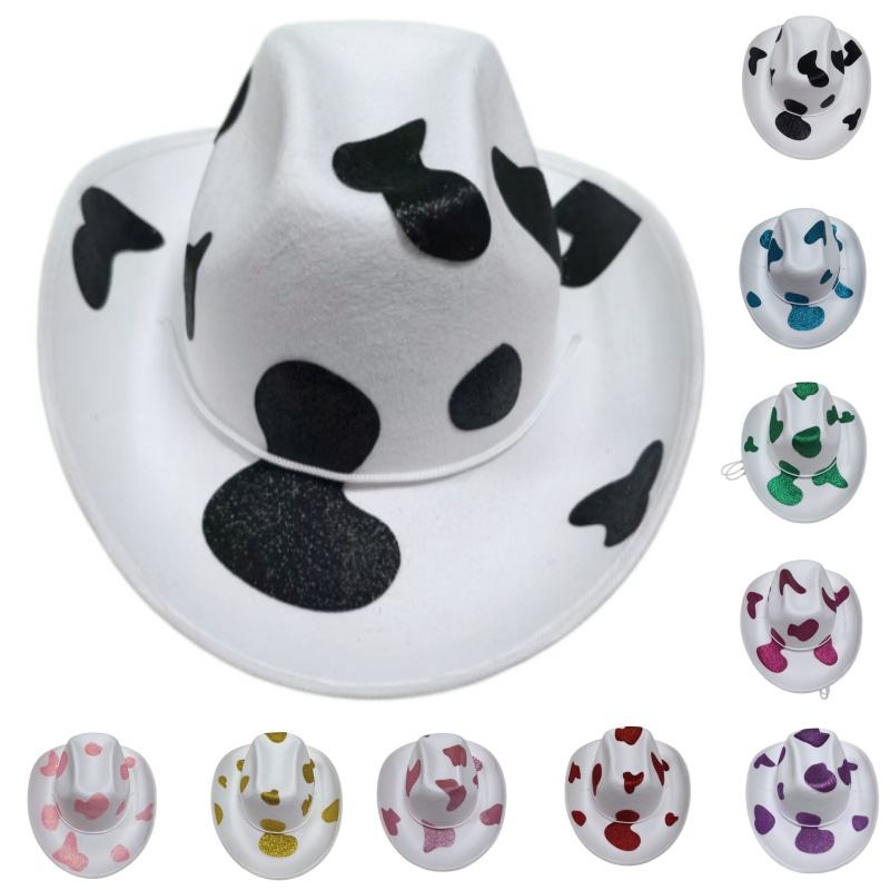 Sombrero Vaquero Personalizado con Estampado de Vaca Multicolor, Brillante, de Ala Ancha, Informal, para Disfraces, Halloween, Fiestas en la Granja