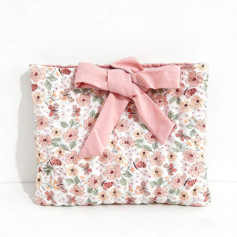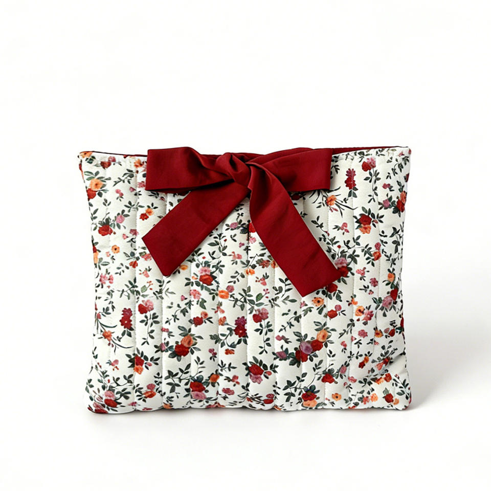 Bolsa de Maquillaje Multifuncional Personalizada, Bolsos Tote Acolchados Florales con Lazo y Cordón