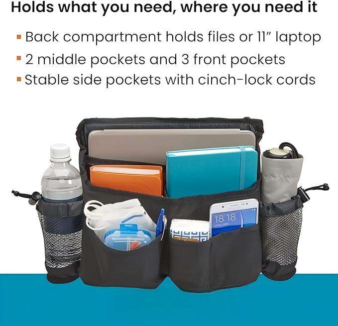 Bolsa Organizadora Multifuncional Personalizada para Manillar de Scooter con Portavasos y Bolsillos de Almacenamiento, Bolsa para Scooter de Movilidad