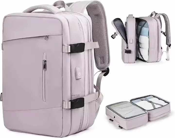 Mochila de Viaje Multifuncional Personalizada, Impermeable, con Cargador USB, de Algodón, Gran Capacidad, Expandible de 20-35L, Unisex, de Oxford