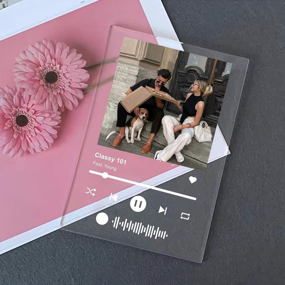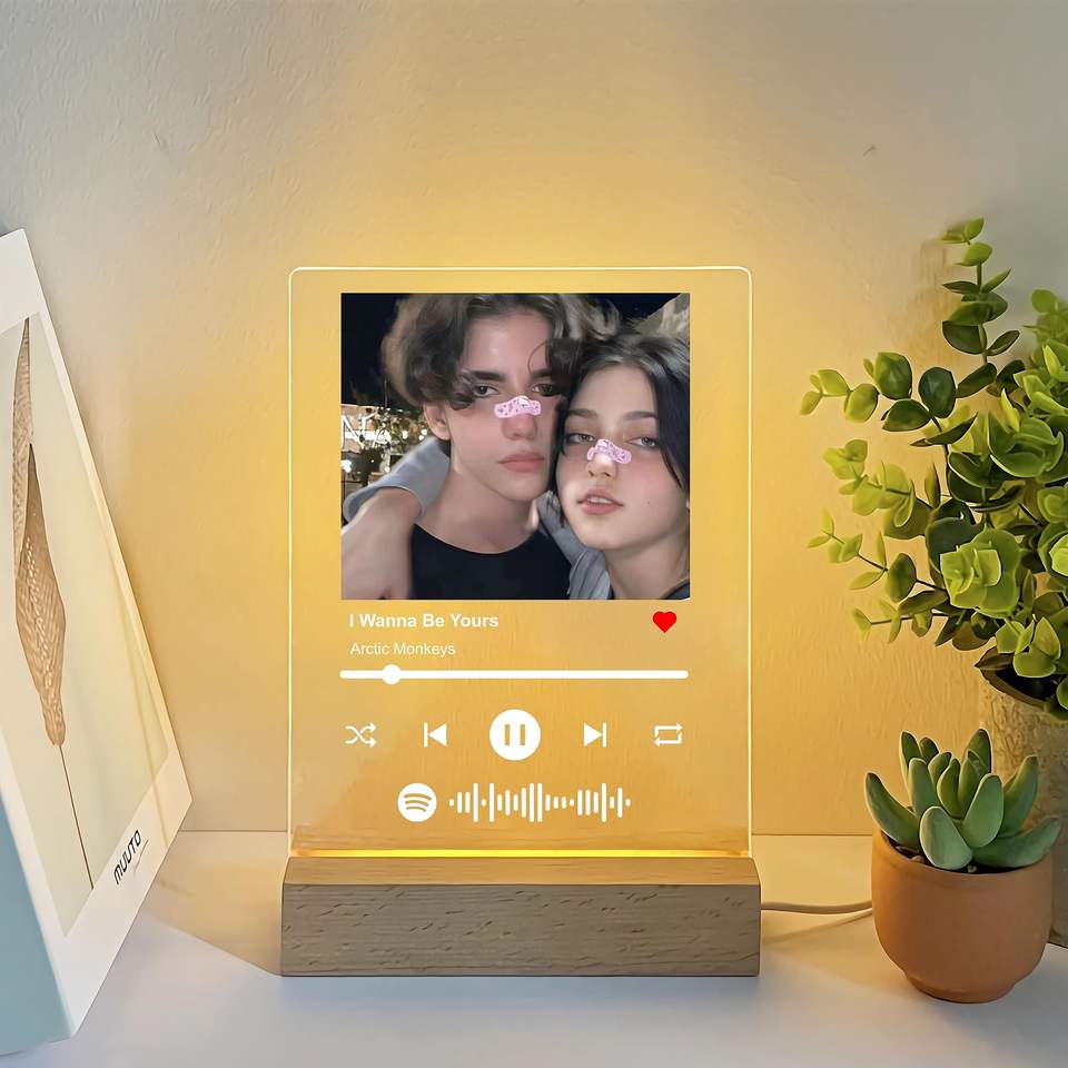 Código de música personalizado Fotos personales/Placa de álbum Acrílico Luz LED Tablero de música Soporte de código de canción con base de madera