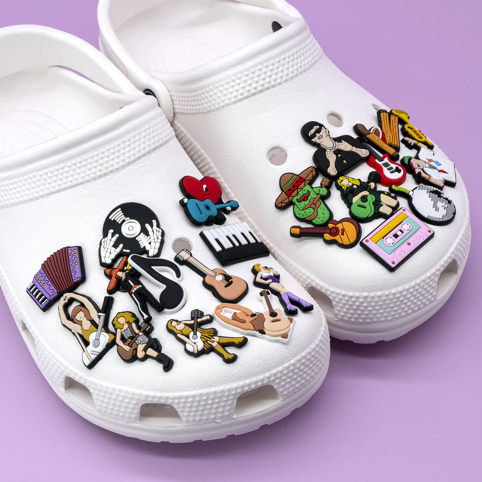 Personalizada música estrella zapato encanto conjunto con guitarra micrófono Piano icónico cantante diseños para moda zuecos accesorios zapato encanto a granel