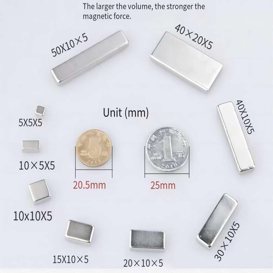 Imán de Neodimio Personalizado N35-N52 con Recubrimiento Permanente de Tierras Raras Ndfeb, Materiales Magnéticos para Motores, Bloques Cuadrados Rectangulares