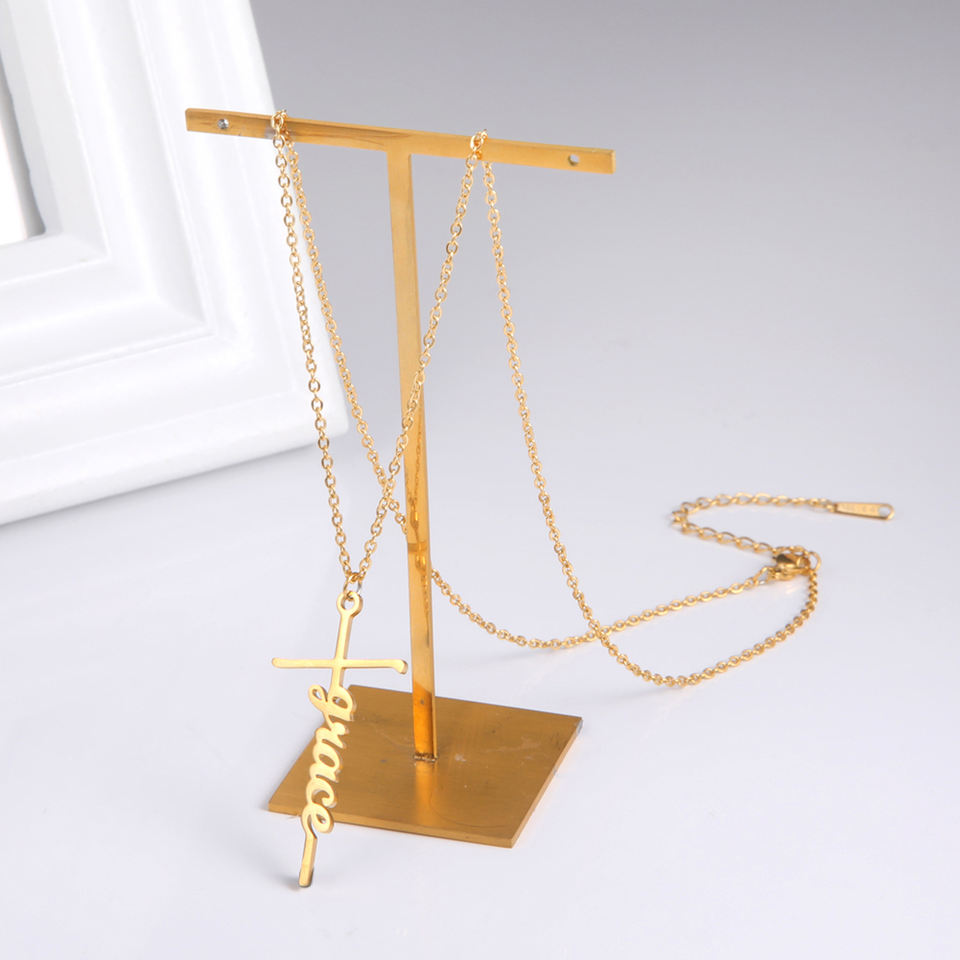Colgante de Cruz con nombre personalizado, collar Unisex de acero inoxidable de Color dorado, regalo de aniversario, joyería personalizada