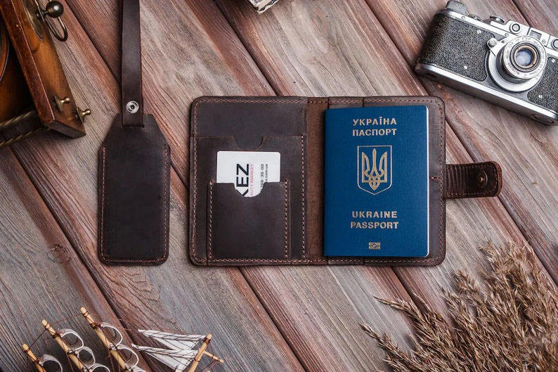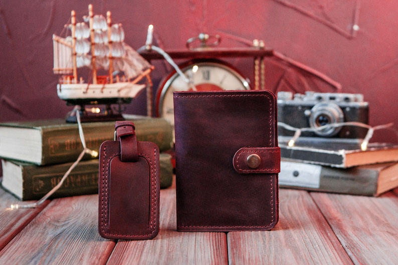 Tipo:Titular de pasaporte de cuero genuino y juegos de etiquetas de viaje