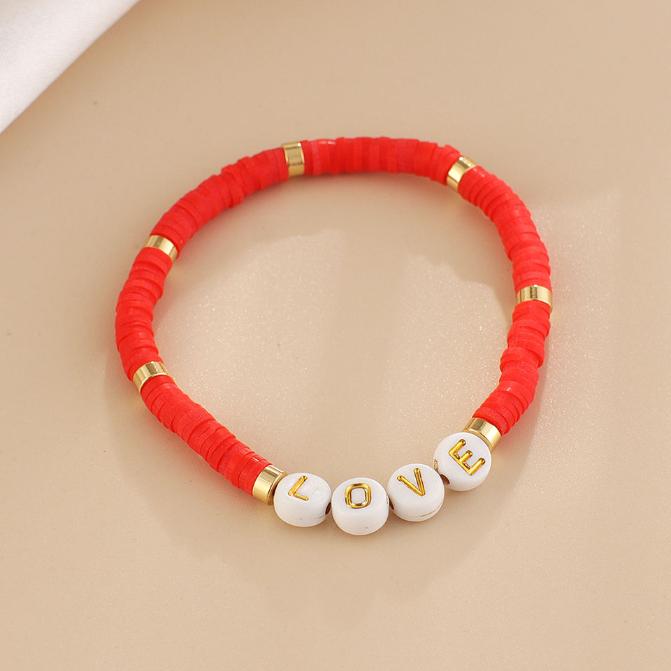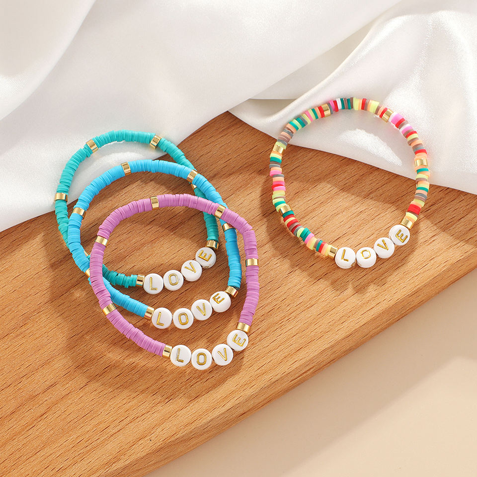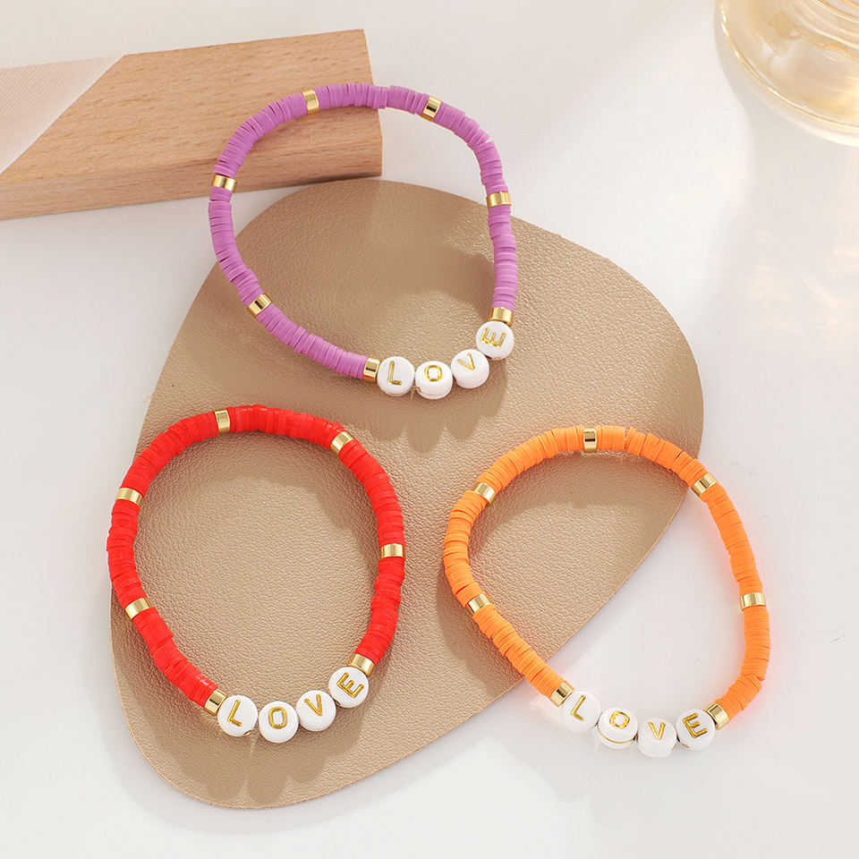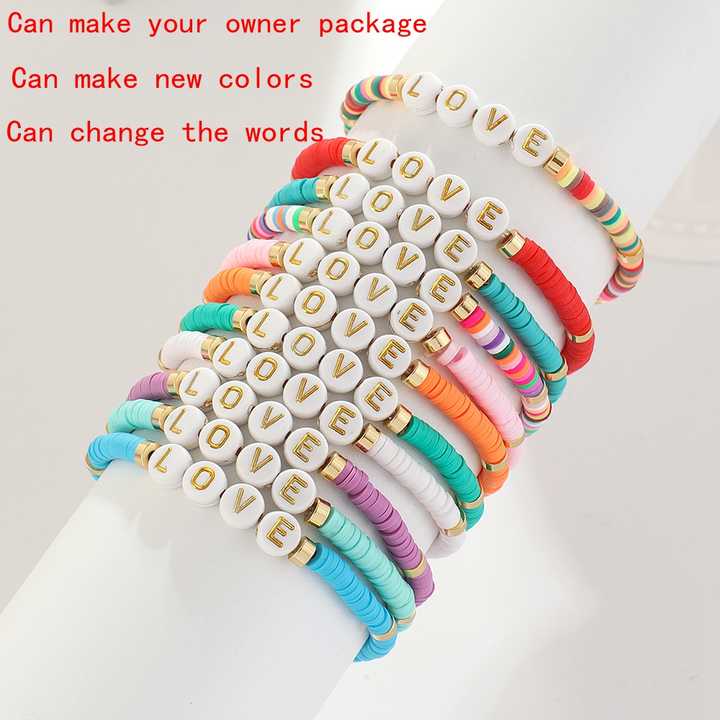 Pulsera de cuentas de arcilla polimérica multicolor bohemio con letras de nombre personalizado, pulsera de amor inspirada en la amistad para regalo