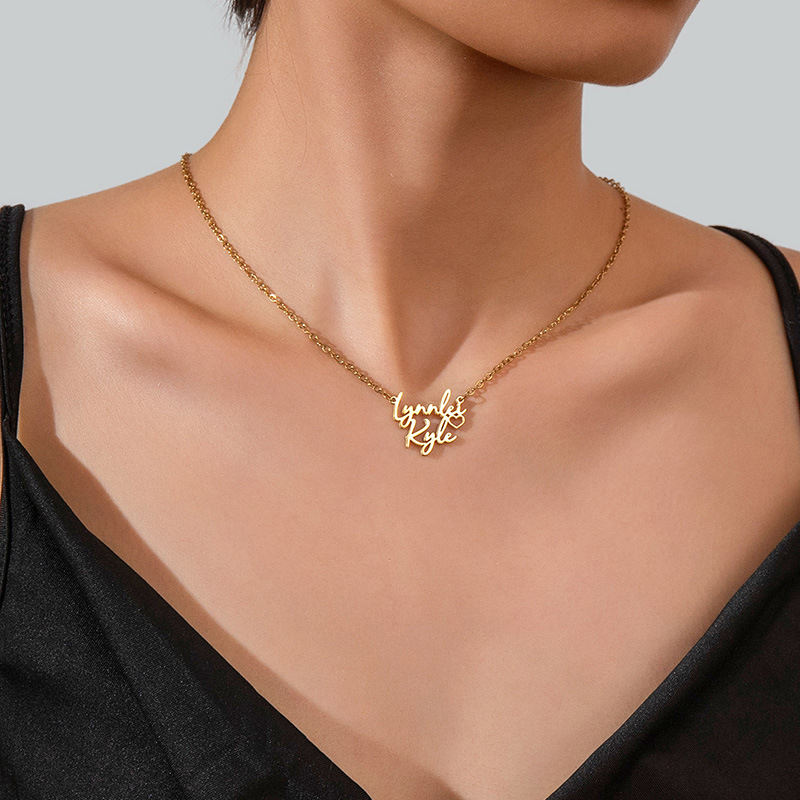 Collar con nombre personalizado, collar de acero inoxidable con corazón hueco y nombre doble sencillo, regalo personalizado para mujeres y hombres, Uionen 2054