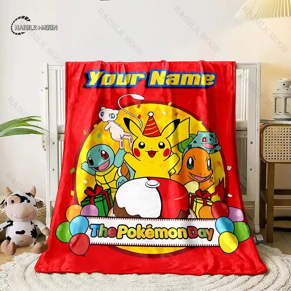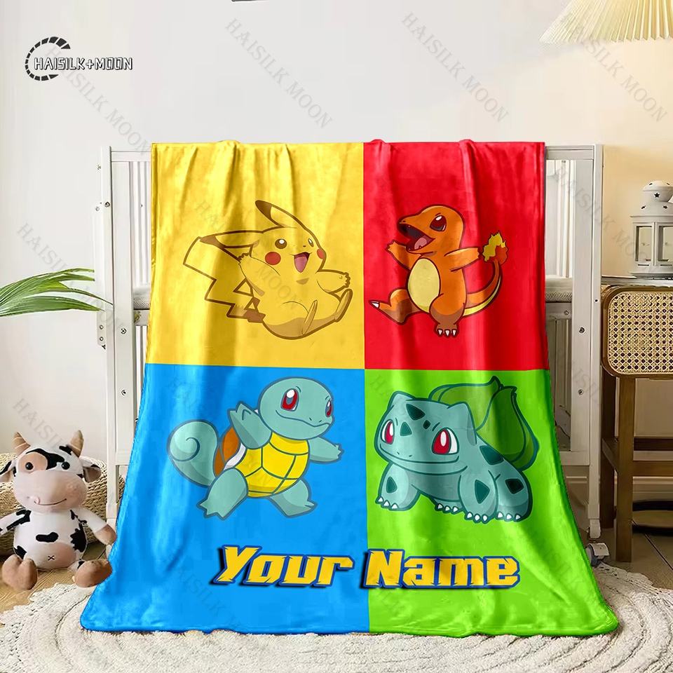 Manta estampada Poke-mon Charizard con nombre personalizado, multiusos para todas las estaciones, para siesta, camping, viajes, coche, sofá, lavable a máquina