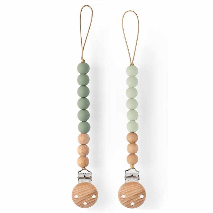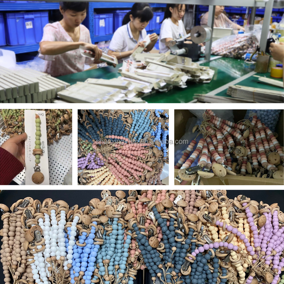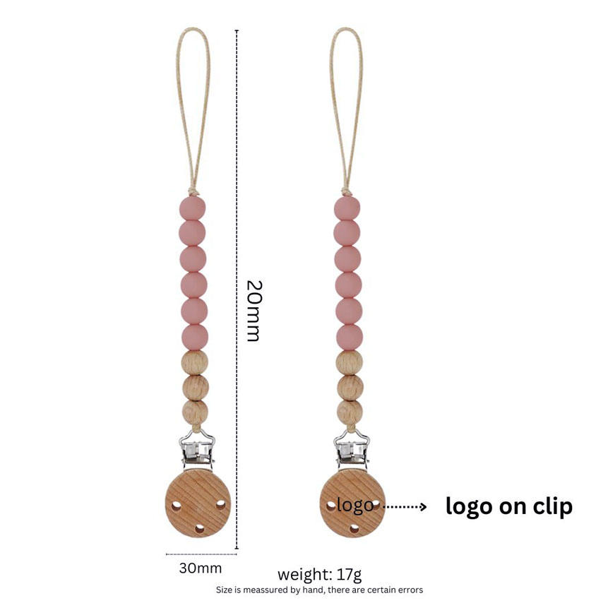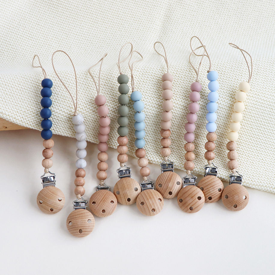 Clip para chupete de dentición con nombre personalizado, cuentas de silicona ligeras y personalizadas, pinzas para chupete de bebé de madera