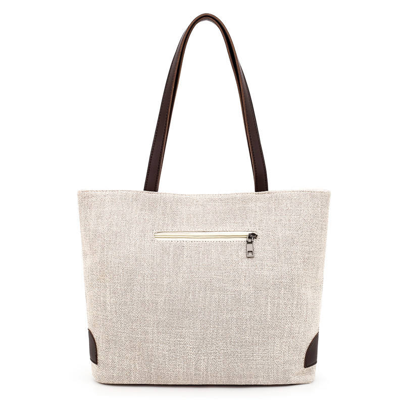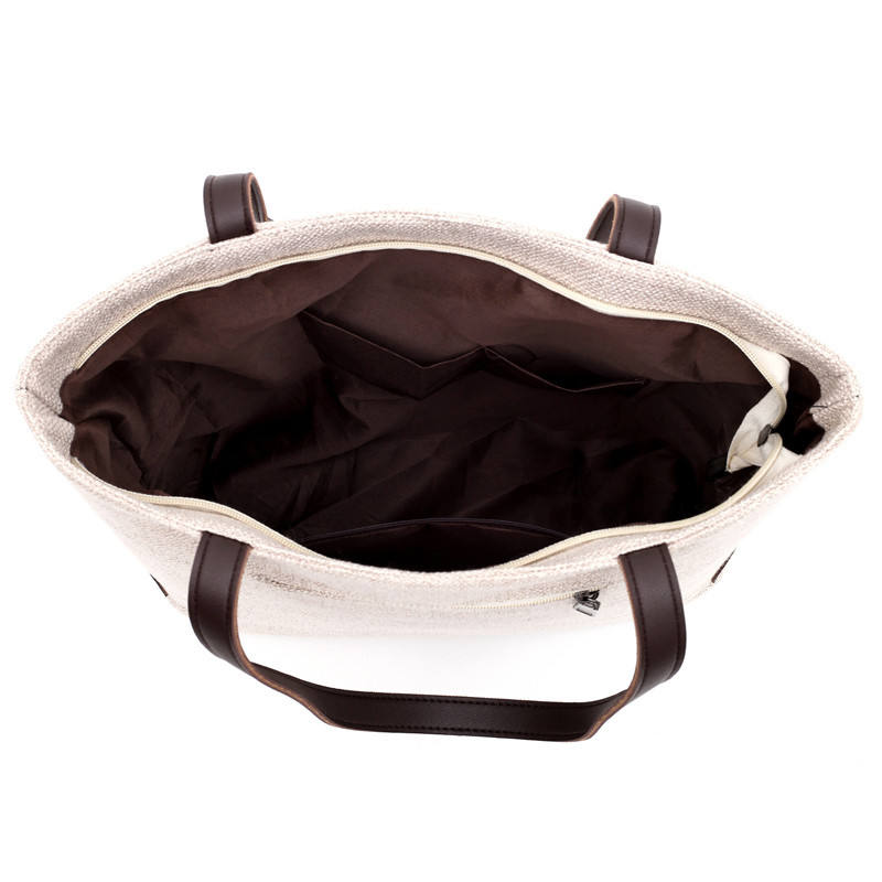 Bolsa de Mano Grande de Lona de Poliéster Ecológica de Alta Calidad con Logotipo Bordado Natural Personalizado, Reutilizable, Lavable, con Cremallera