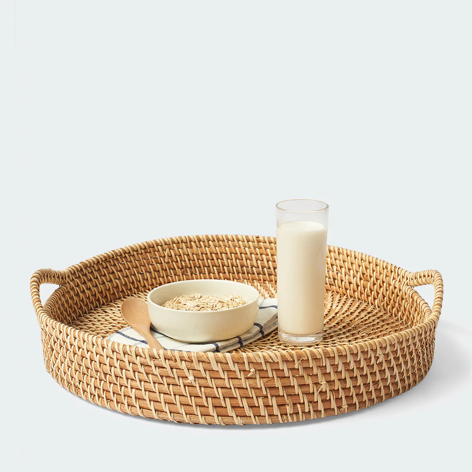 CESTA DE RATÁN DE Mimbre Redonda Natural Personalizada/Bandeja de Ratán con 2 Asas Laterales Multiusos para Cocina, Comedor y Exhibición