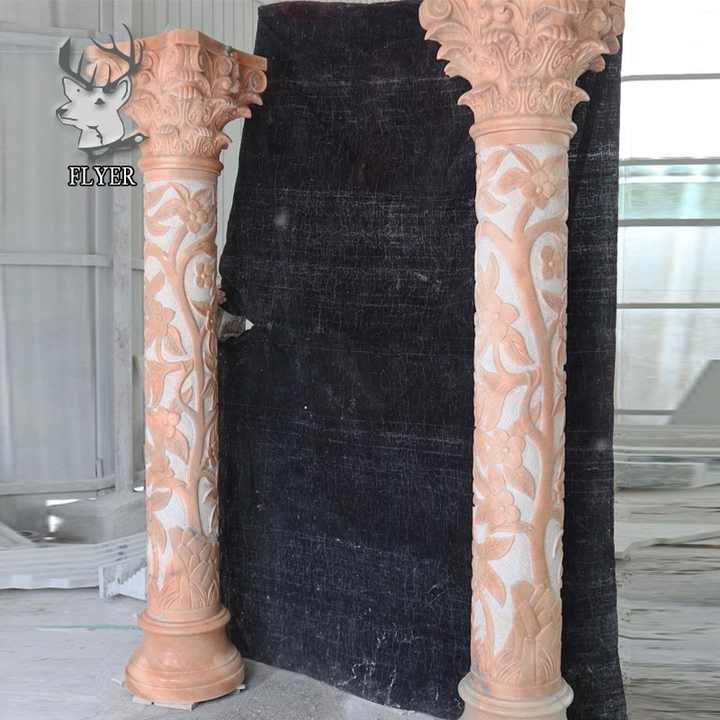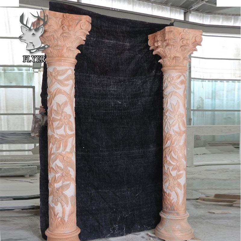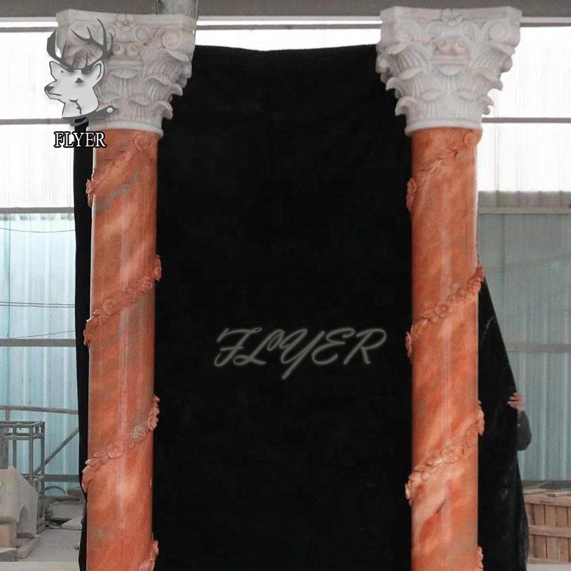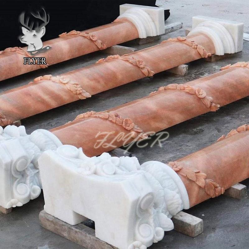Columnas de mármol rojo puesta de sol natural personalizada Columnas de Pilar romano de piedra decorativa para exteriores