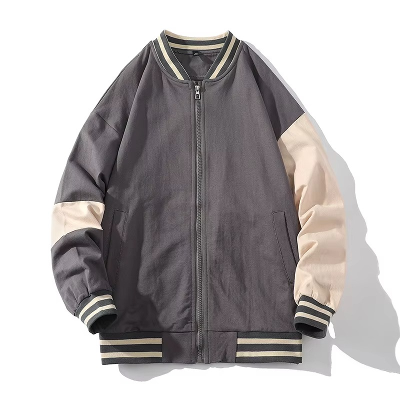 Personalizado azul marino Beige Varsity chaqueta hombres Zip Up Bomber chaqueta moda Universidad uniforme Streetwear prendas de vestir exteriores OEM ODM al por mayor