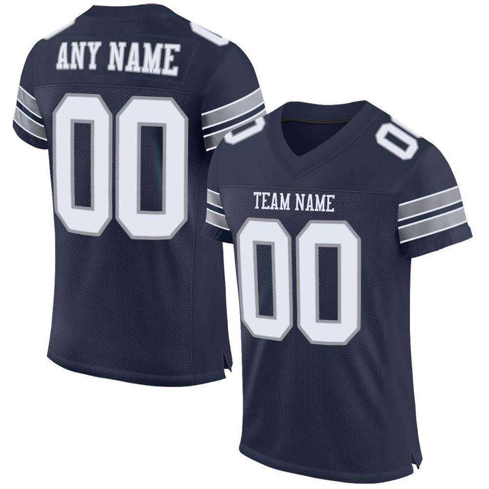 Camiseta de Fútbol Personalizada Azul Marino con Rayas Blancas, Nombre del Equipo, Número, Tejido de Malla Transpirable, Manga Corta, Ropa Deportiva Antibacteriana