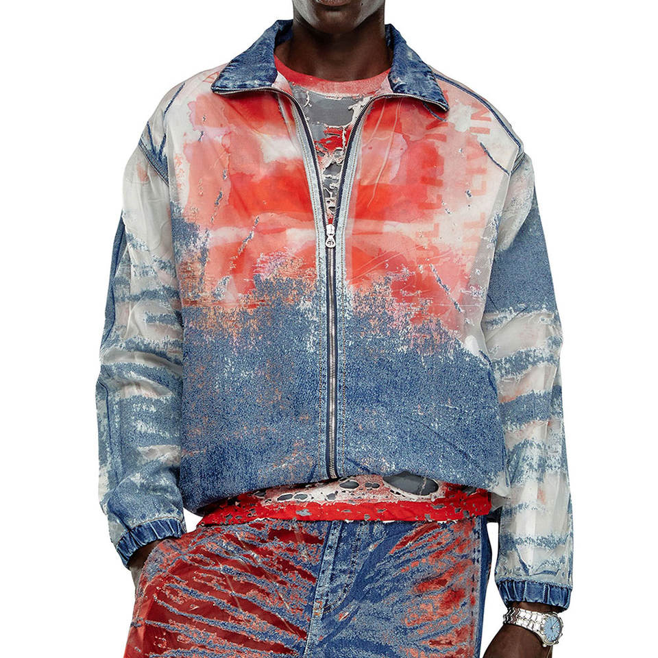 Chaqueta Vaquera de Invierno para Hombre, Diseño Personalizado, Cuello Alto, Azul y Rojo, Calidad Premium, con Logotipo Personalizado, Impresión por Sublimación