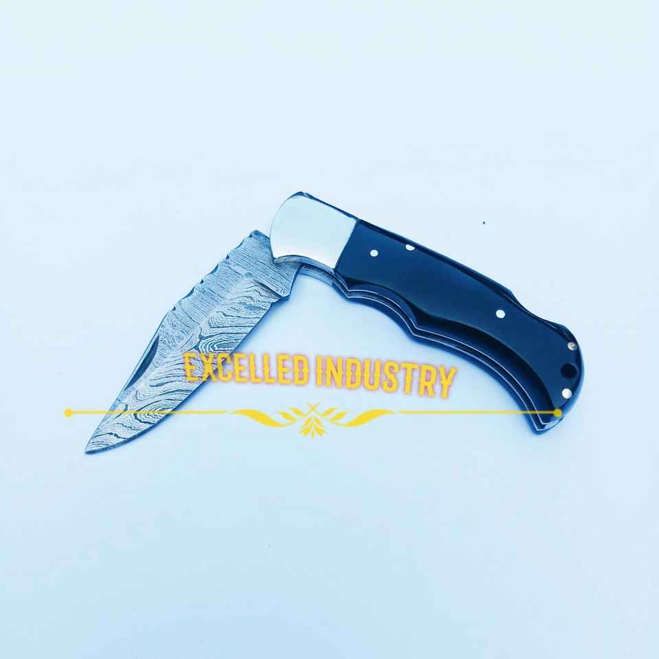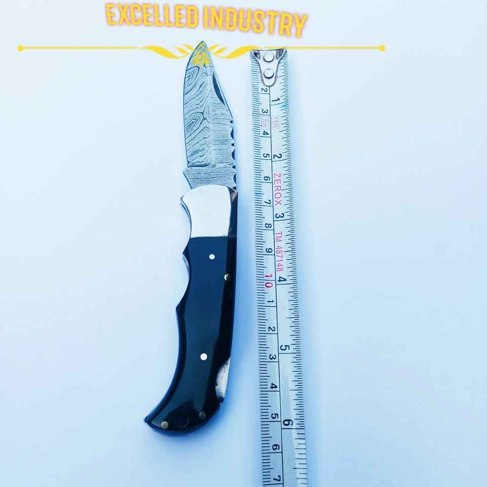 Nuevo diseño personalizado hecho a mano al aire libre Camping caza cuchillo de bolsillo plegable supervivencia cuchillo plegable con cuerno de toro negro