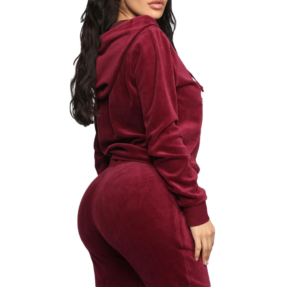 Nuevo diseño personalizado de manga larga de invierno sólido Activewear Jogger Suit Training Sweatsuit Mujeres Regular Velour Hooded Velvet