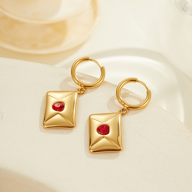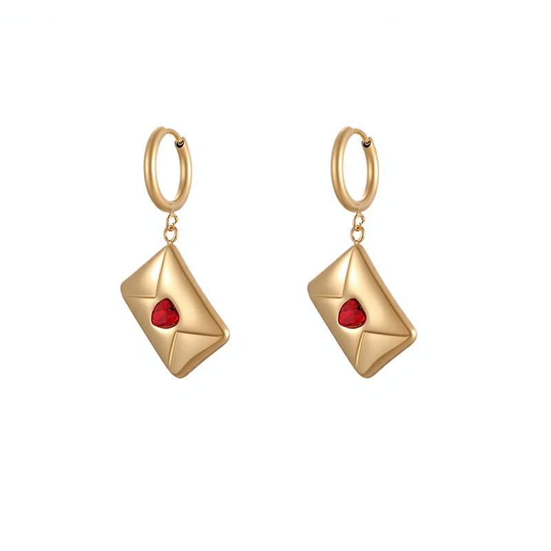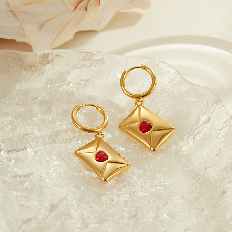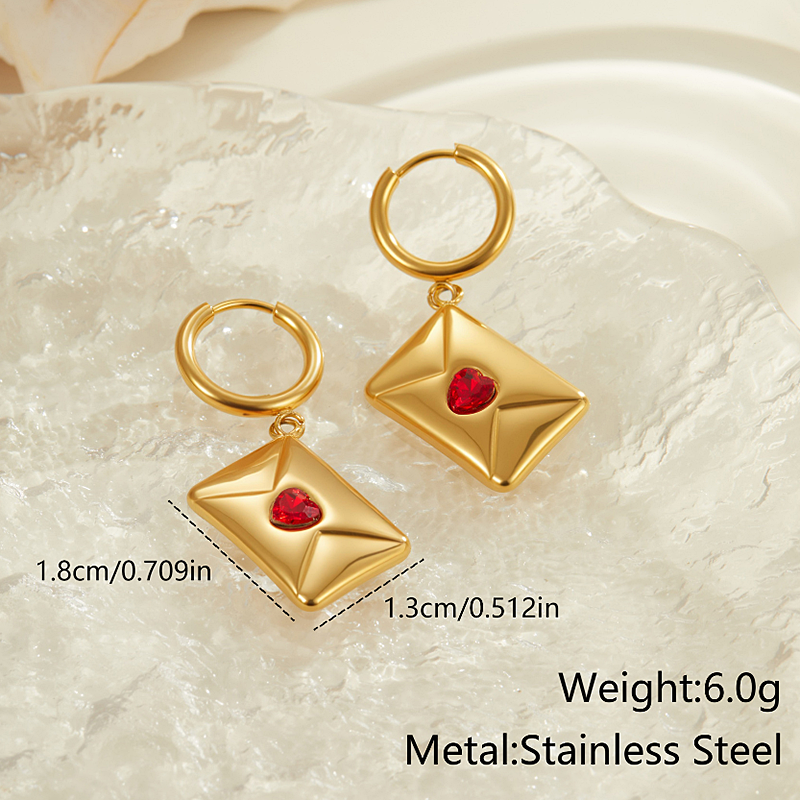 Nuevo Colgante de Sobre Personalizado, Delicado, de Acero Inoxidable, Chapado en Oro de 18K, con Dije de Corazón Rojo, Pendientes de Joyería para Regalo de Aniversario de Matrimonio