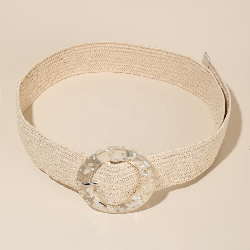 Cinturón trenzado clásico de estilo bohemio a la moda nuevo Vintage personalizado, cinturón elástico tejido de colores, cinturón de rafia para mujer, hebilla de resina