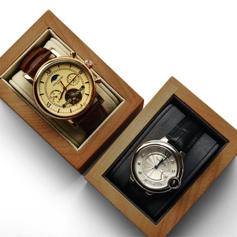 Caja de exhibición de relojes personalizada, nueva, de madera maciza con almohada de microfibra, soporte de exhibición para relojes de pareja