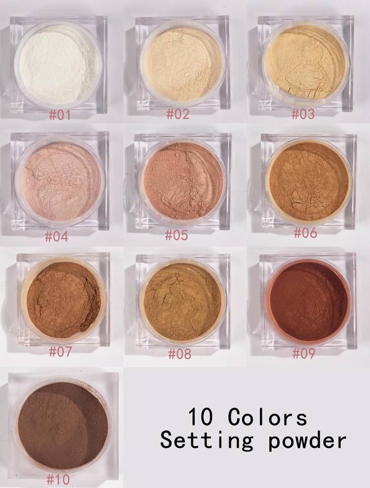 Polvo suelto Mineral mate translúcido impermeable sin logotipo personalizado etiqueta privada polvo de ajuste de enfoque suave para piel oscura