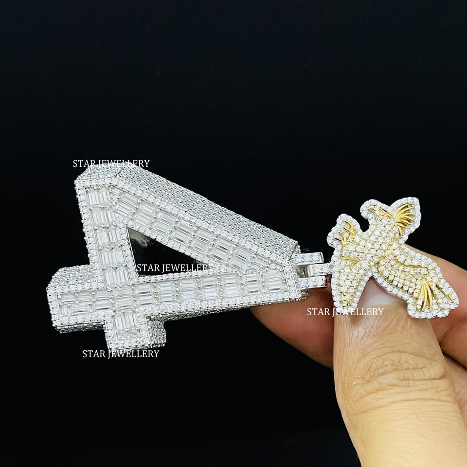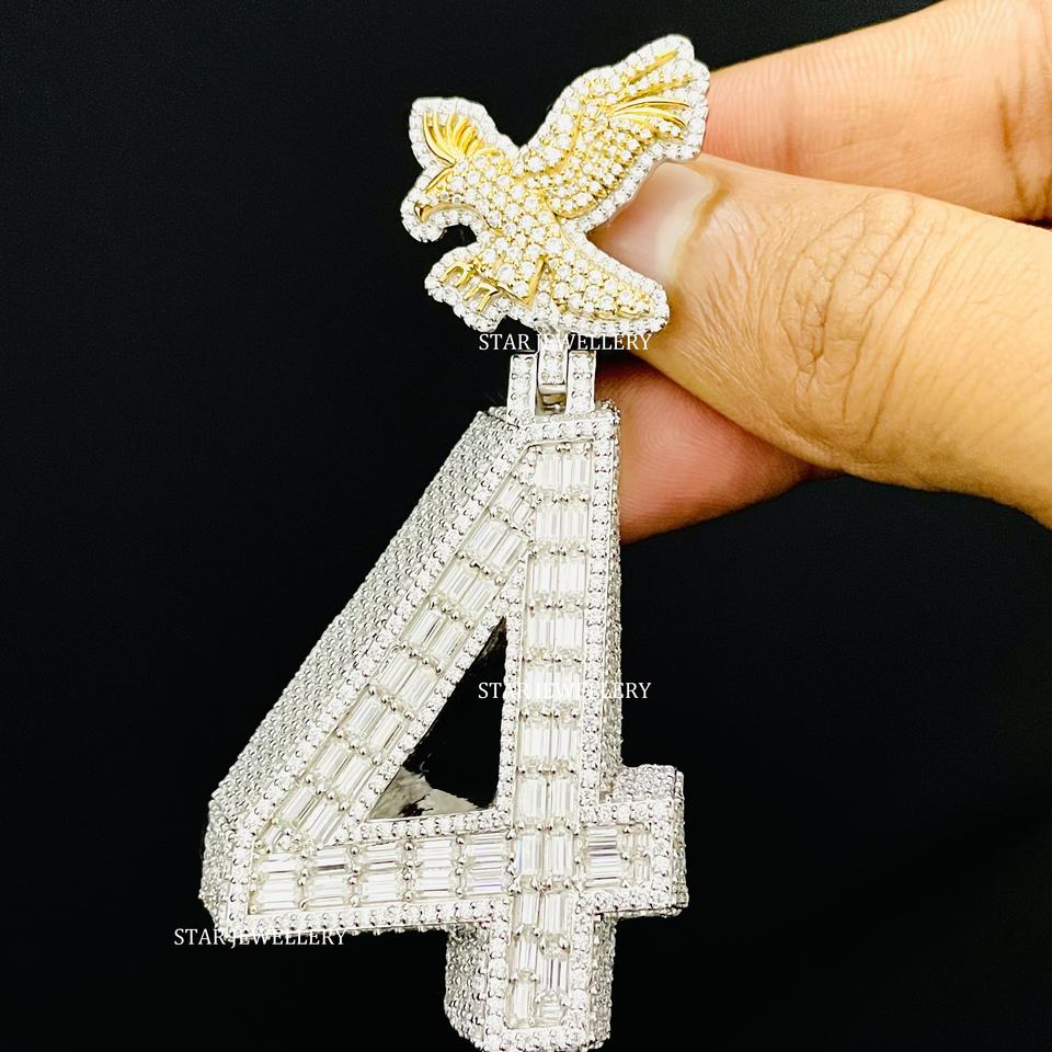 Colgante personalizado número 4 VVS Moissanite Hip Hop Iced Silver Personalizable Moissanite Charms, 925 Silver Custom Letter 4 Pendant