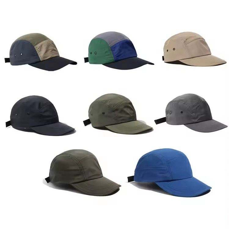 Gorra de 5 Paneles Personalizada de Nailon Impermeable de Secado Rápido para Campamento y Running