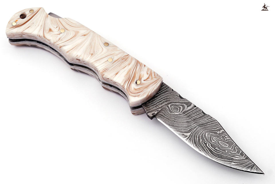 Navaja de bolsillo plegable de acero de Damasco OEM personalizada, cuchillos de supervivencia de caza táctica EDC para acampar al aire libre