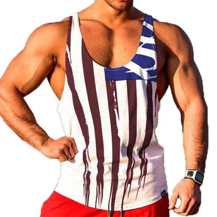 Camiseta sin mangas OEM personalizada para hombre, Camiseta de algodón a rayas para gimnasio, Fitness, entrenamiento muscular, culturismo, camiseta sin mangas estampada