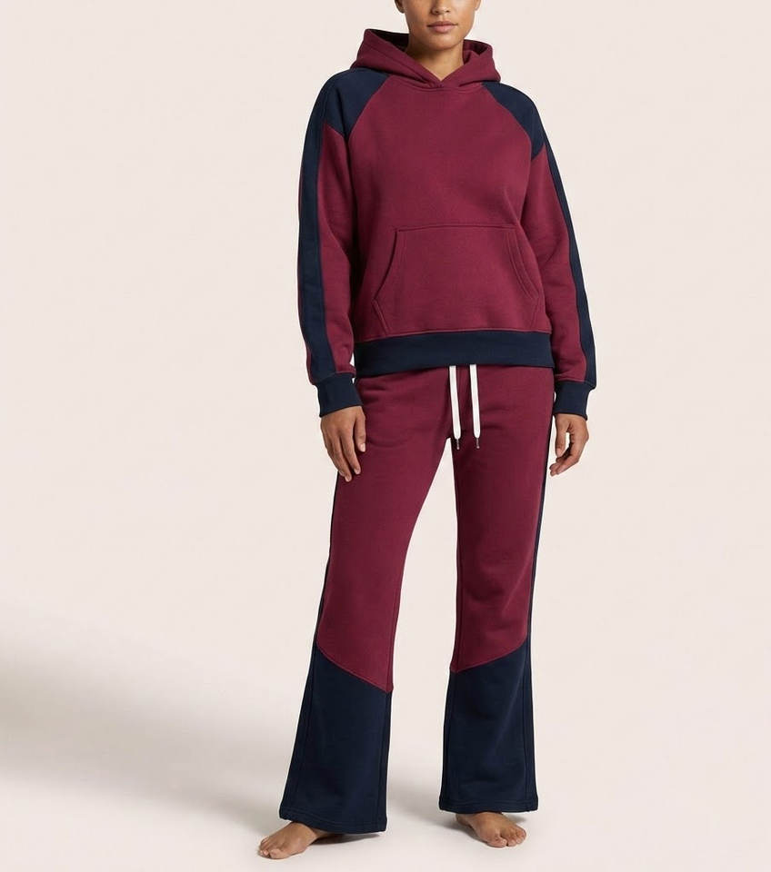 Conjuntos Deportivos de Forro Polar Personalizados de Alta Calidad OEM/ODM, Conjuntos de 2 Piezas con Bloques de Color en Contraste, Fabricante
