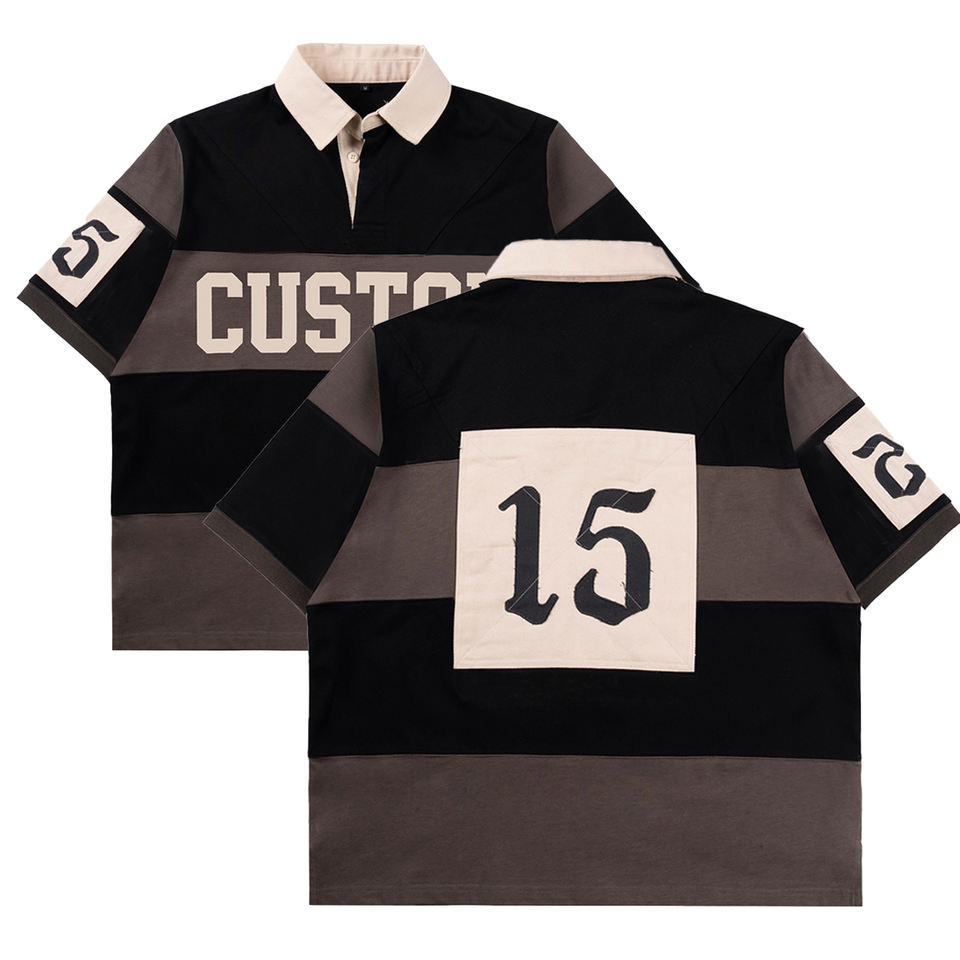 Custom OEM Oversized Color block Polo Shirt Men Streetwear Cotton Short Sleeve Contrast Panel Printed Casual Top For Wholesale
