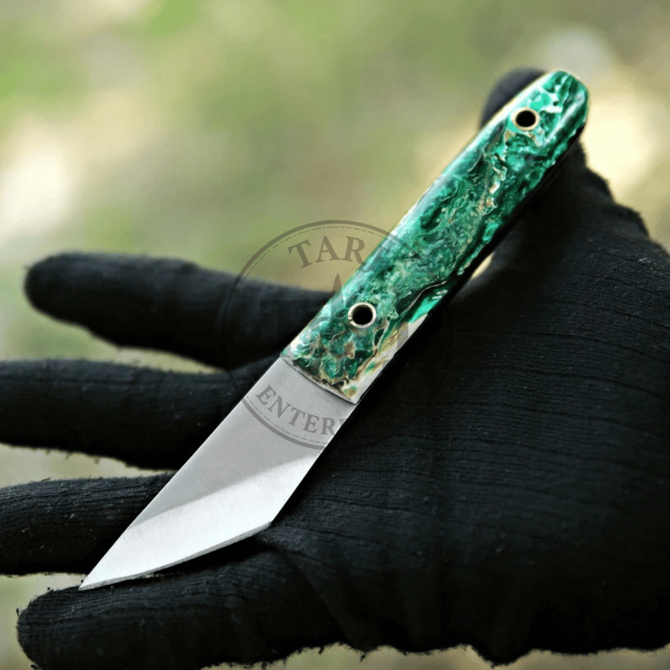 Cuchillo de camping personalizado OEM pequeño tipo Tanto de hoja fija de acero inoxidable con punta caída, cuchillos utilitarios EDC compactos con mango de resina y espiga completa