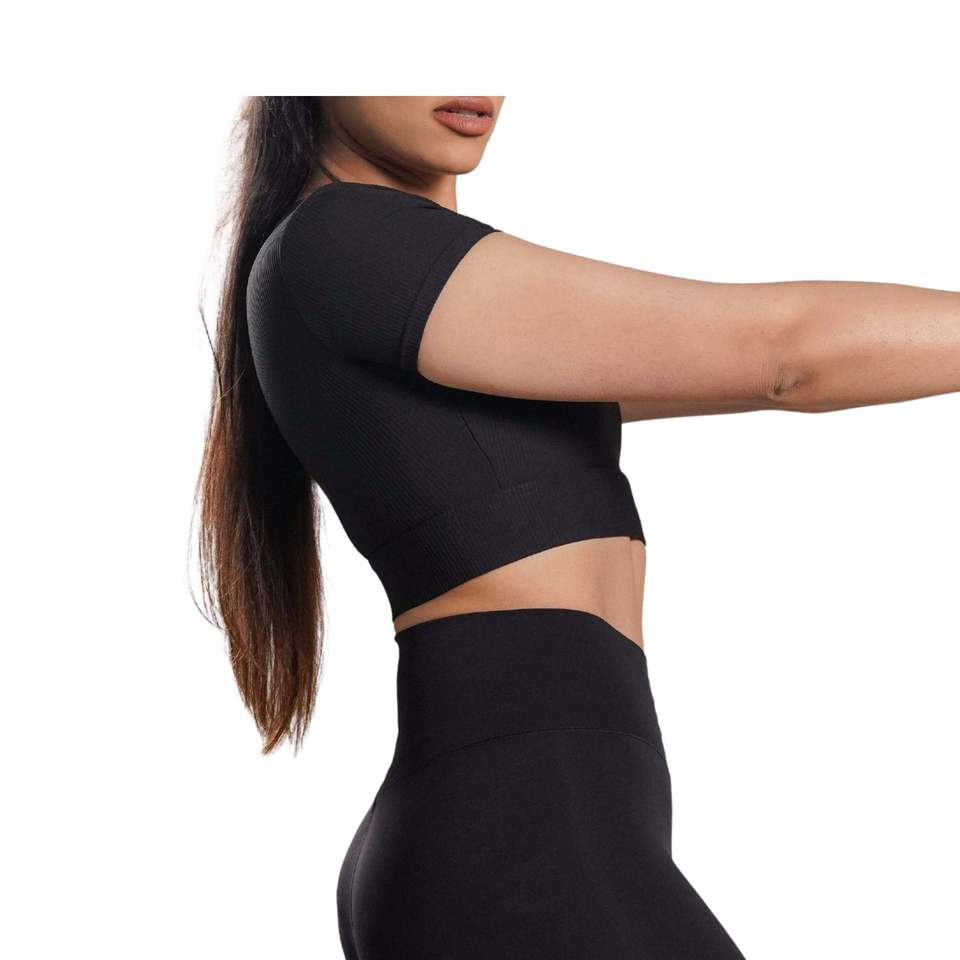 Camiseta Deportiva Corta Acanalada para Mujer, Personalizada OEM, Transpirable, Elástica, para Yoga, Gimnasio, Entrenamiento, Fitness, Ropa Deportiva, Ajustada