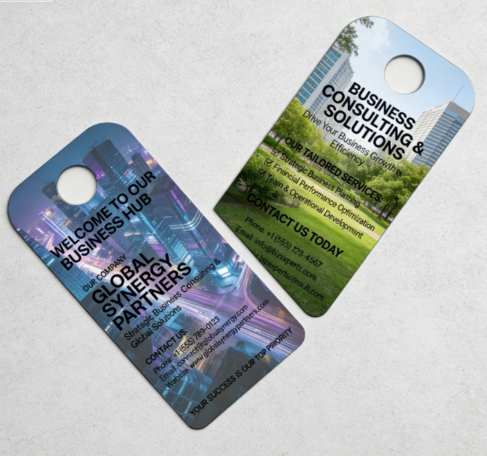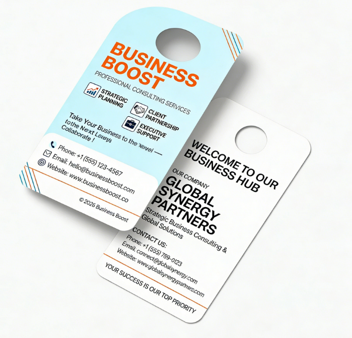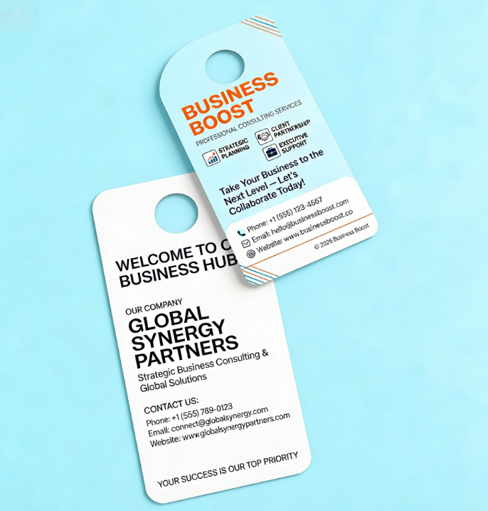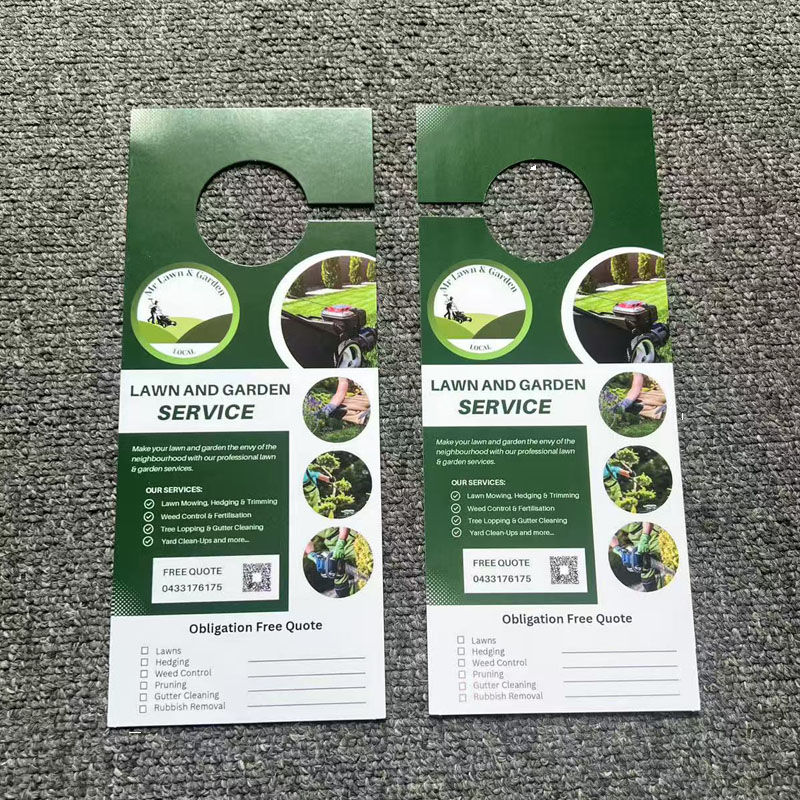 Tarjeta de felicitación personalizada de papel offset con orificio para colgar en la puerta, folletos personalizados para hoteles, tarjetas de visita, película para serigrafía