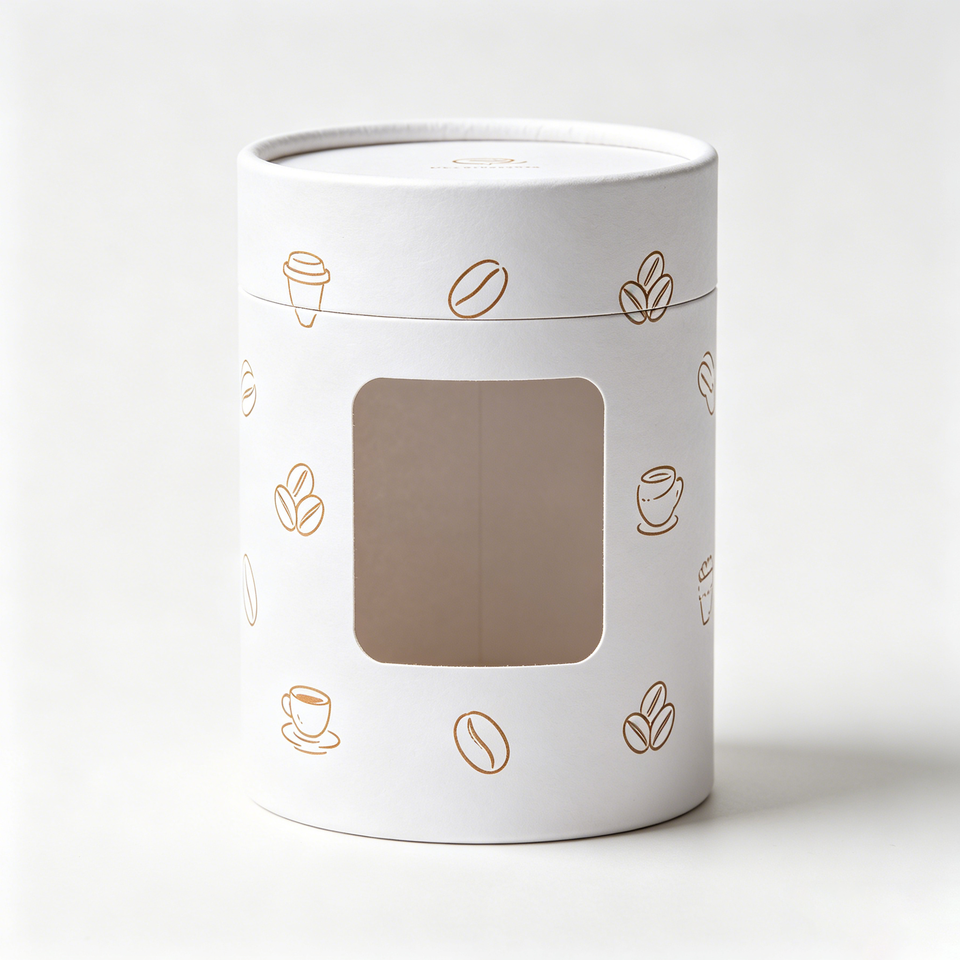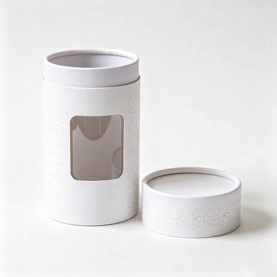 Envase de Papel Cilíndrico con Impresión Offset Personalizada, Ventana Transparente de PET, Tubo Antipresión para Empaque de Granos de Café