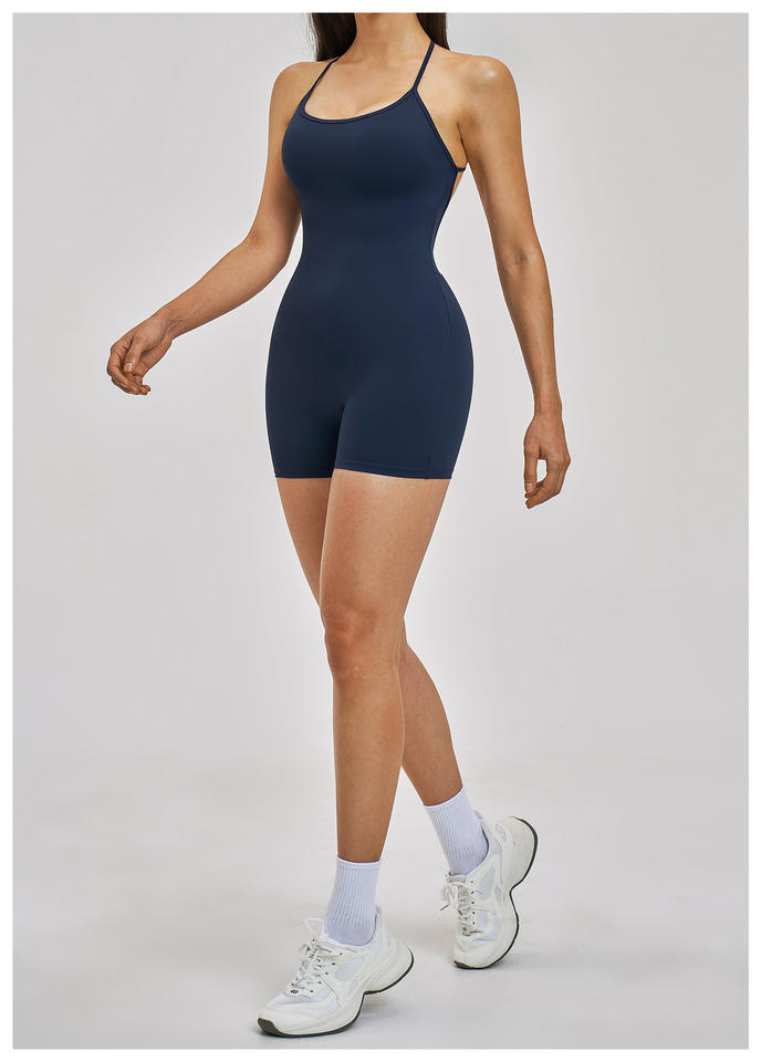 Mono deportivo personalizado de una pieza sin espalda, enterizo deportivo al por mayor, mono corto de yoga para mujer
