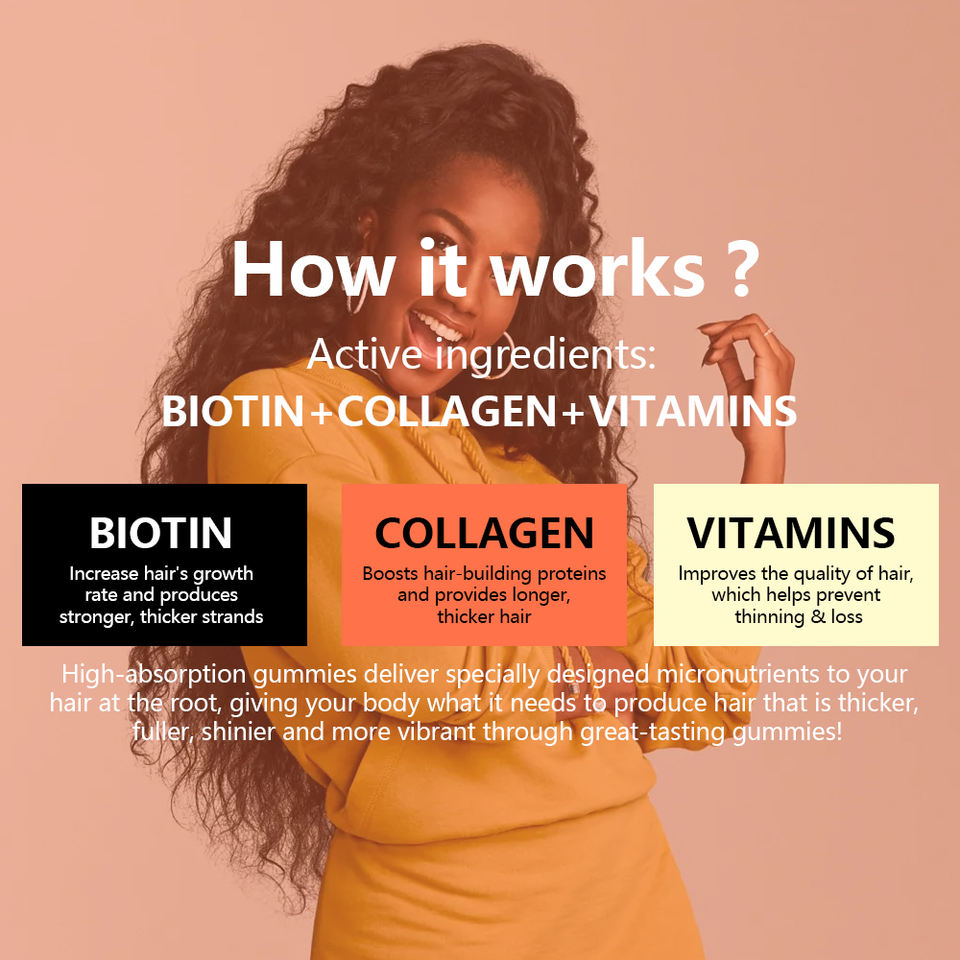 El suplemento de extracto de vitamina B6 orgánico personalizado apoya la salud del cabello y la apariencia radiante Biotina y colágeno Gmmies
