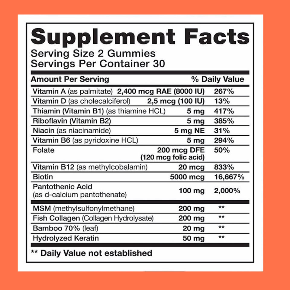 Biotina, Vitamina A, Vitamina D, Vitamina B6Ingrediente principal