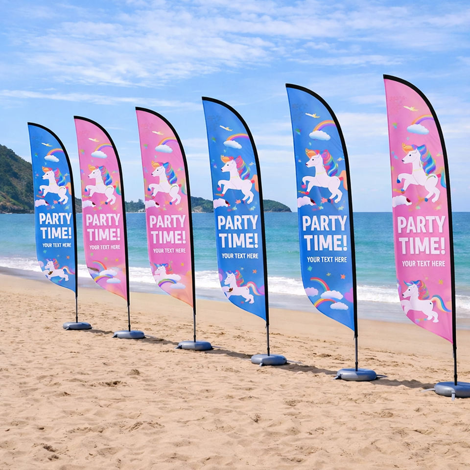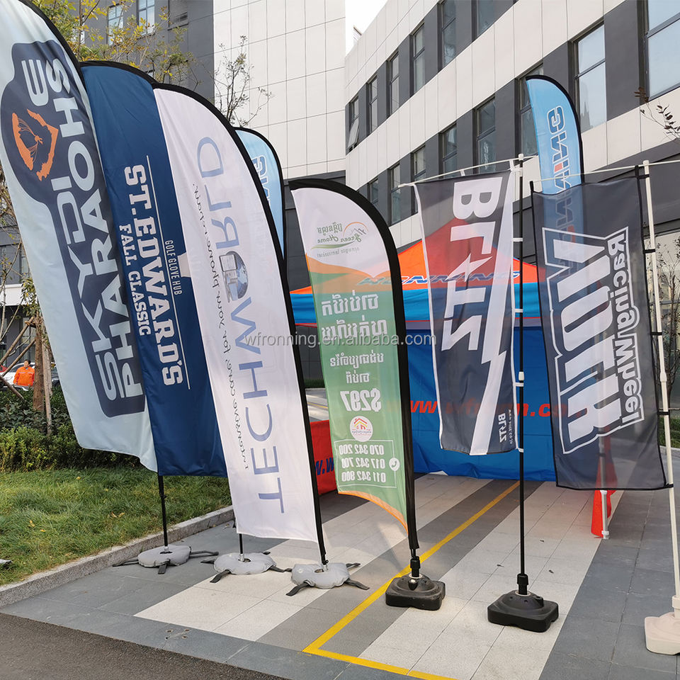 Banderas de Pluma de Poliéster Personalizadas para Publicidad Exterior, Banderas de Playa en Forma de Lágrima, Banderas con Base Cruzada y Estaca, Pancartas Promocionales