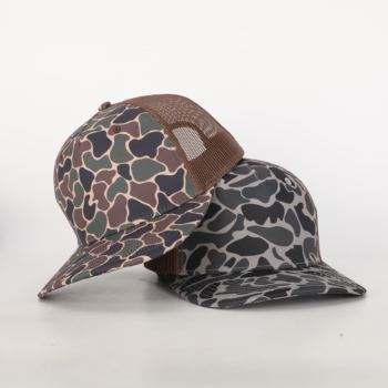 Gorra Trucker Personalizada Estilo Americano para Exteriores, Diseño de Malla con Estampado de Camuflaje, Visera Curva, Tela de Algodón para Deportes y Uso Diario