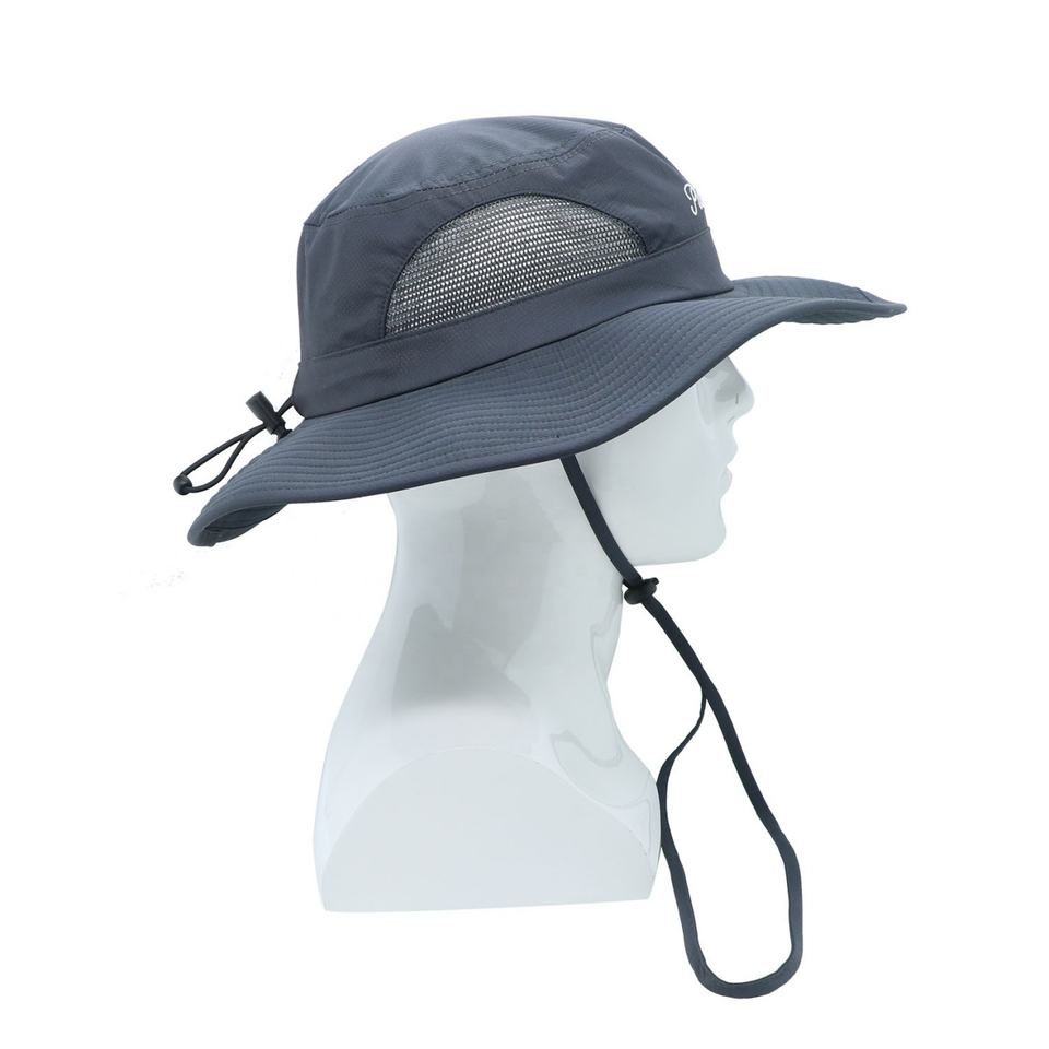 Sombrero de Pesca Personalizado de Malla para Exteriores con Ala Ancha y Cordón Cortavientos, Tipo Bucket, para Hombres y Mujeres