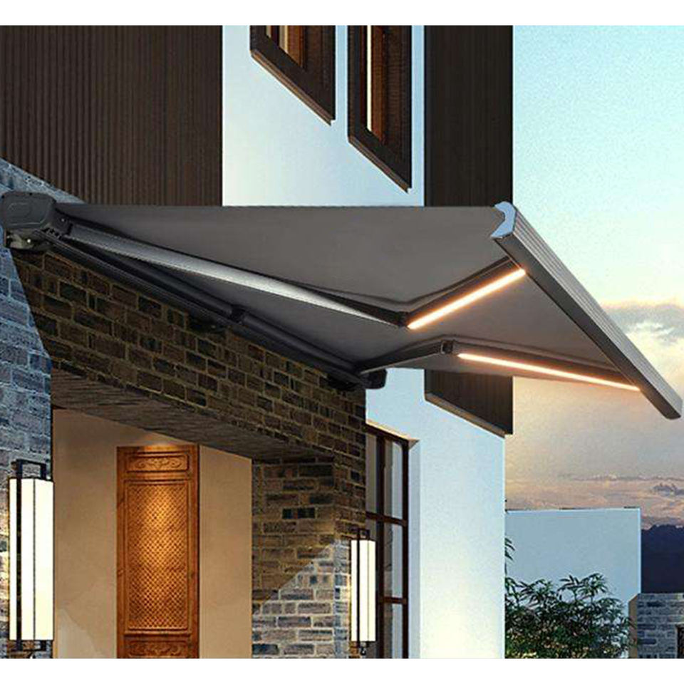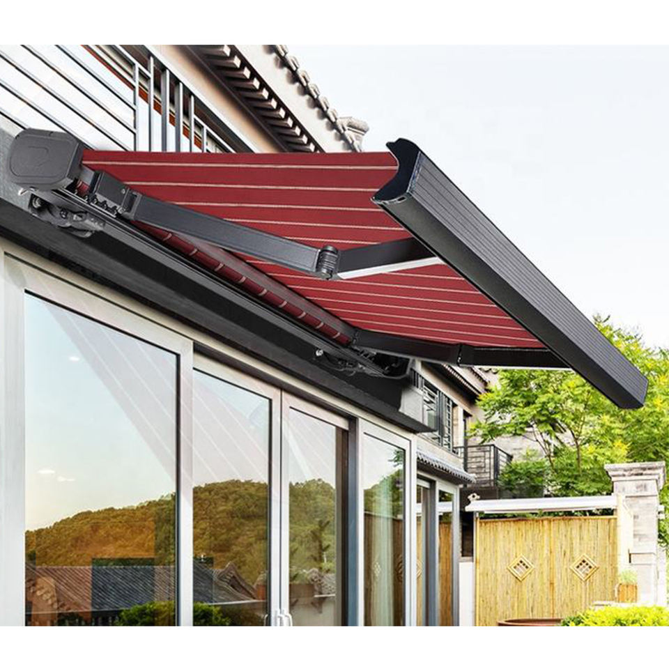 Toldo retráctil personalizado para exteriores, toldo plegable eléctrico para techo deslizante, marco de aleación de aluminio, toldos retráctiles de Material metálico