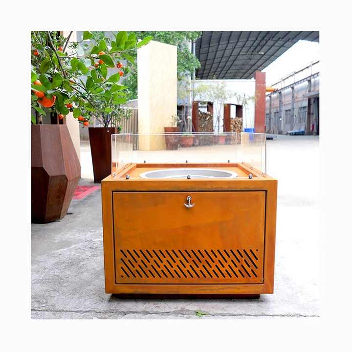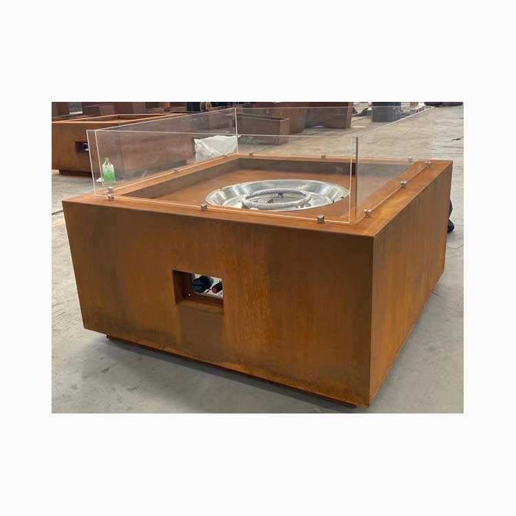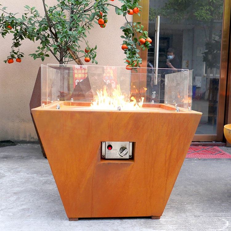 Mesa cuadrada personalizada para exteriores, chimenea de Gas, barbacoa, quemador de propano
