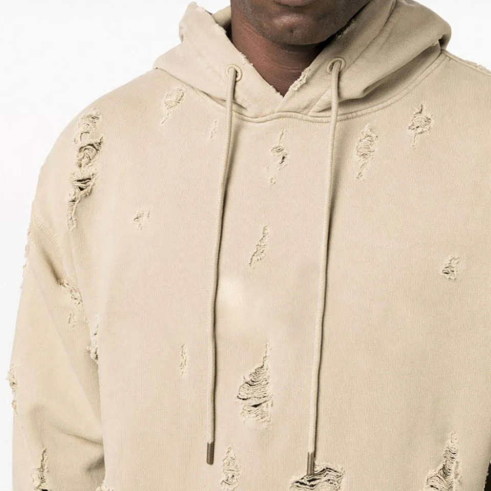 Sudaderas con capucha desgastadas lavadas con ácido de gran tamaño personalizadas para hombre 100% algodón invierno peso pesado rasgado Vintage conjuntos de sudadera al por mayor