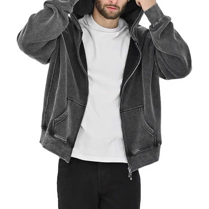 Sudaderas con Capucha Extra Grandes Personalizadas, Lavadas al Ácido, Desgastadas, con Cierre, Superventas, Tela de Algodón, Ropa Urbana para Hombre, Sudaderas Lavadas Personalizadas