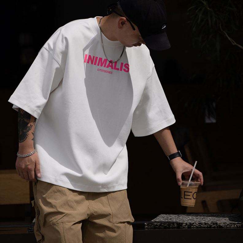 Caja de gran tamaño personalizada camiseta hombres gráfico Boxy camiseta 300 Gsm algodón peso pesado abajo hombro Boxy camiseta para hombres