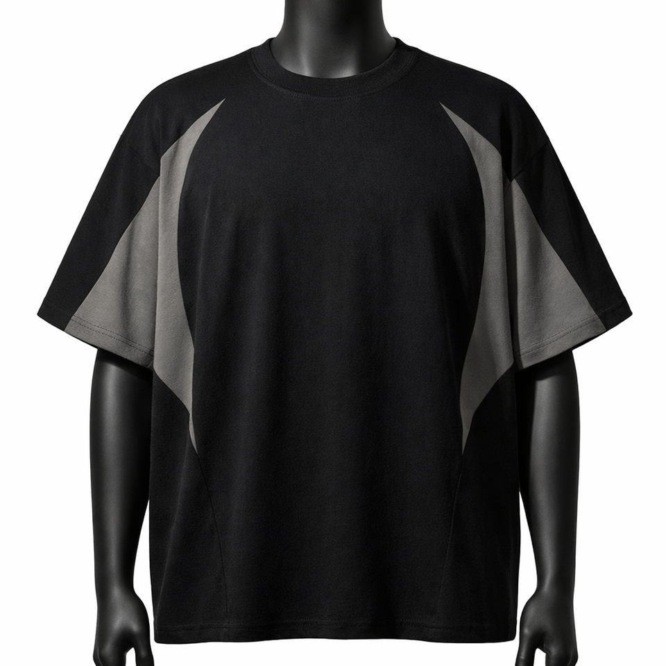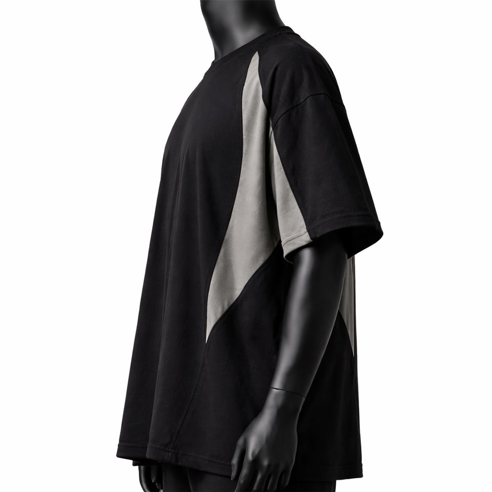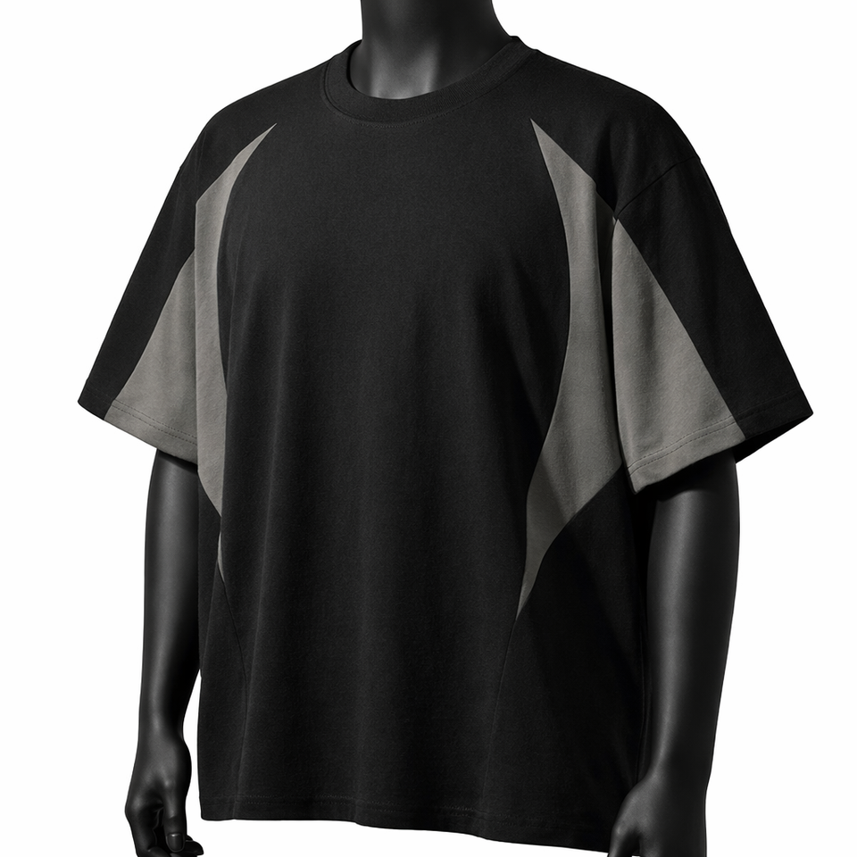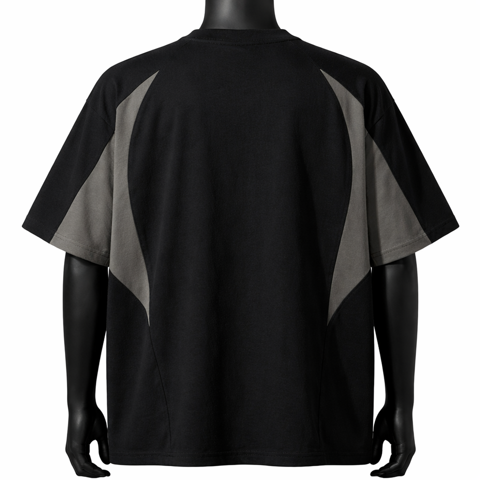 Camiseta Oversize Personalizada con Bloques de Color para Hombre, Estilo Urbano con Paneles en Contraste, Algodón, Manga Corta, Casual, Moda, Lisa, con Ribete